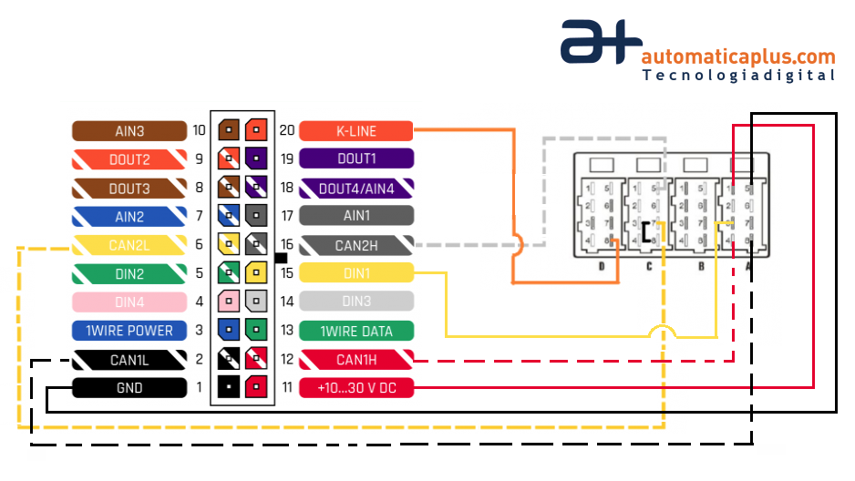 - Finalmente, coenctar CAN2 L y CAN2 H del aGPS al tacógrafo [C5(tacógrafo) <-> CAN2 H(aGPS)] y [C7(tacógrafo) <-> CAN2 L(aGPS)]